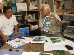 安部公民館を午前10時に出発して海側の村内(集落)をてくてくてくてく…途中、縁側でくつろいでいるお母さんや散歩中のお父さん、海岸で潮干狩りしているおばあさんとユンタク(おしゃべり)しながらシマ(集落)の暮らしや古い行事のことなどを教えてもらいつつ、てくてくてくてく……いつの間にかお昼時になってしまいました。